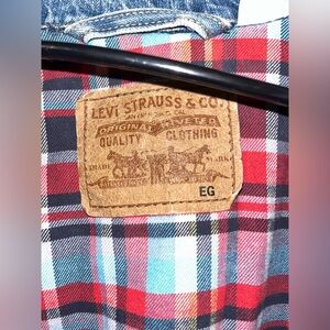 Vintage Levi’s 80s/90s Flannel Plaid Lined Denim Trucker Jacket Size Large