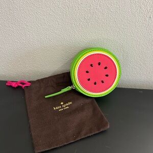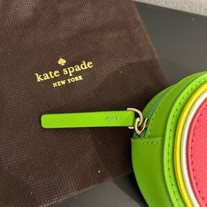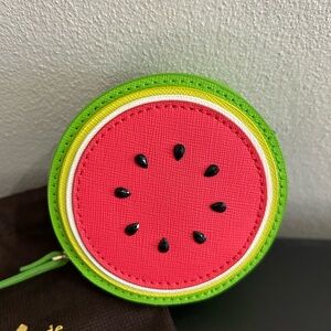 Charming watermelon-themed coin bag by Kate Spade. Bright green and red design. Rhinestone seeds and zipper closure. New without tags! Comes with dust bag!