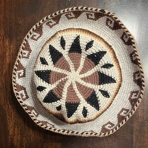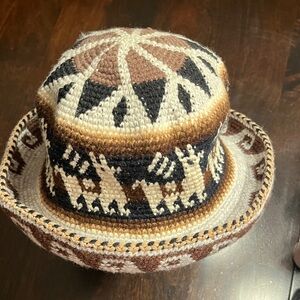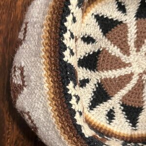 Unique, adorable knit hat featuring an alpaca pattern. Colors include brown, tan, cream,and black. Please see/enlarge photos for features and measurements. From a smoke-free, pet-free home.