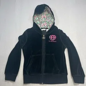 Marc Ecko Red by Marc Ecko Velour Zip Hoodie Black Pink Logo Girls M