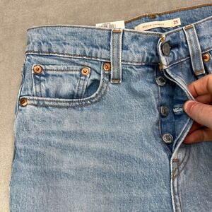 Levis Premium Wedgie Straight Jeans Womens 25 Blue Button Fly Distressed New Nwt