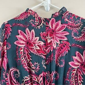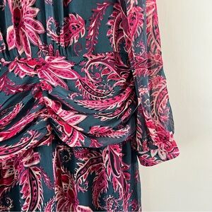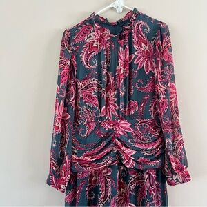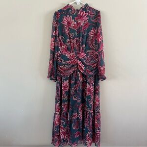 Maggy London Paisley Gathered Waist Maxi Dress 16 Slate cherry blossom green