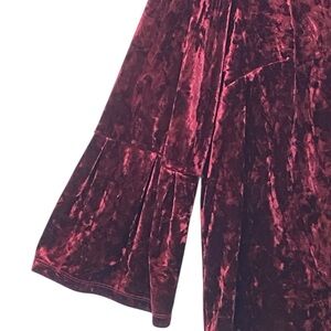 Ellos Crushed Velvet Bell Sleeve Top Red Wine Size 18/20 Stretch Mock Neck Y2K