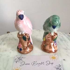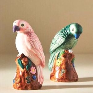 Anthropologie Handpainted Glazed Stoneware Salt and Pepper Shakers Birds NIB NWT