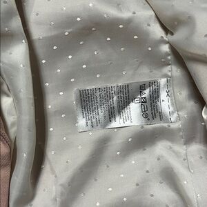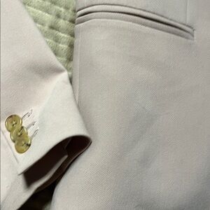 Sophisticated single-button blazer in a soft blush pink. Notched lapel and welt pockets. Gold-tone buttons on front and cuffs. Smooth lining for comfortable wear. Versatile for work or events.