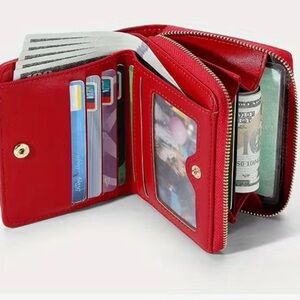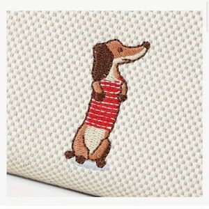 Charming wallet featuring a cute embroidered Dachshund dog design. The brown/red/pink and cream colors add a stylish touch. Perfect for dog lovers.
