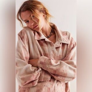 NWT Free People S We the Free Keep it Cozy Shirt in Berry Combo New $168 retail
