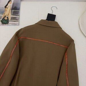 Miu Miu Brown Leather-Patch Collar Jacket | Retro Preppy Short Jacket, Size S