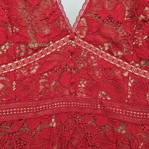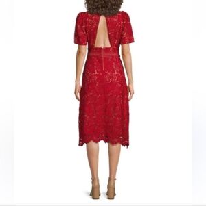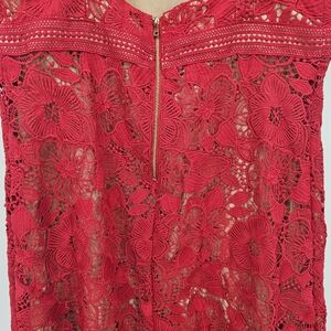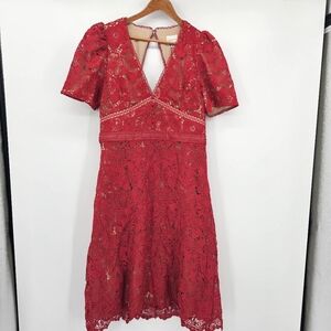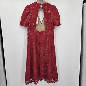 Adelyn Rae Red Lace mod Illusion Midi Dress Womens Size Large new