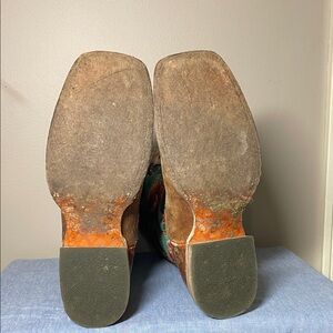 Step out in style with these vibrant Western boots. Featuring a stunning multicolor floral design and rich brown leather, these boots are perfect for making a statement. Ideal for any occasion, they combine comfort with eye-catching style.