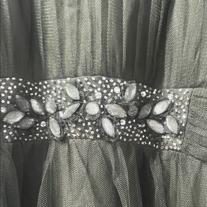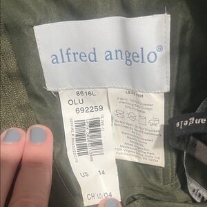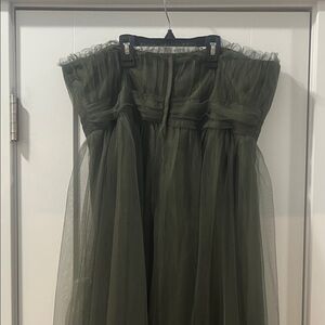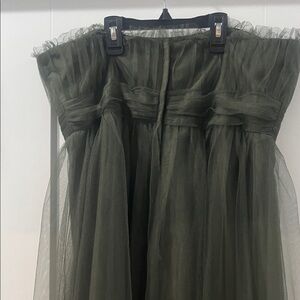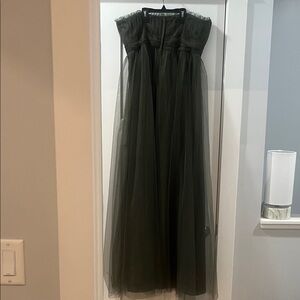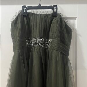 Strapless Olive Green Tulle Prom Dress Ball Evening Gown Worn once EUC Alfred Angelo Size 14