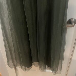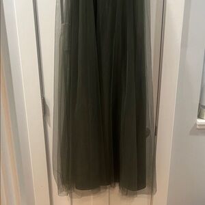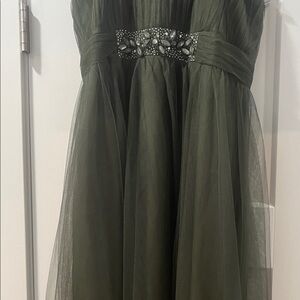 Strapless Olive Green Tulle Evening Gown Prom Worn once EUC Alfred Angelo Sz 14
