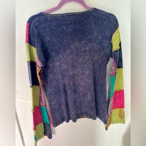 Anthropologie Colorful Patchwork Long Sleeve Top