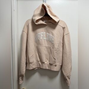 Offline By Aerie Hoodie Cropped Cream Sz XS OFFLINE Spell Out Beach Vacay Summer