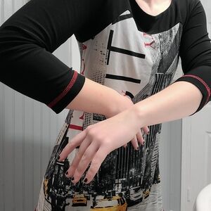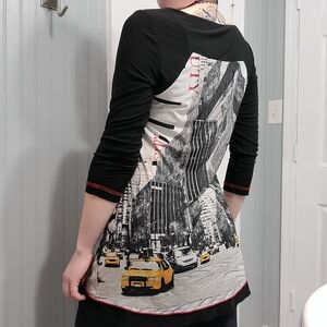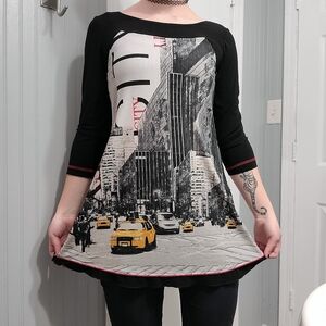 adorable comfortable and stretchy long shirt with new York scene on the front and back!