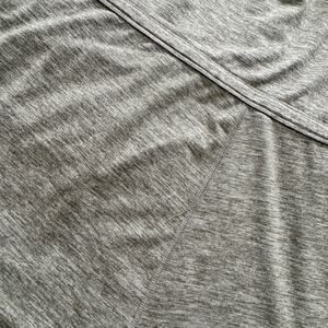 Soft heather gray Vuori Lux harem jumpsuit in women’s medium featuring scoop neck, relaxed drop-crotch silhouette, elastic drawstring waist, side pockets, and ultra-soft stretch knit performance fabric perfect for athleisure, yoga, lounge, travel, minimalist capsule wardrobe, and casual everyday wear.