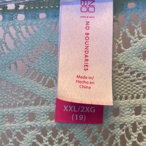 Woman’s dressy turquoise mid sleeved crochet back pull on sweater. No boundaries size 2X (19). Like new.