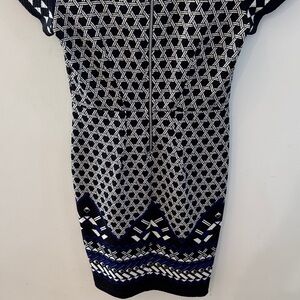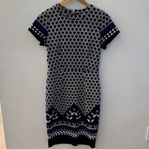 🔷 H&M Black & Blue Geometric Midi Dress Size Small