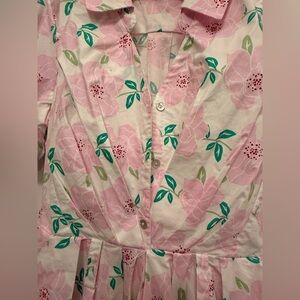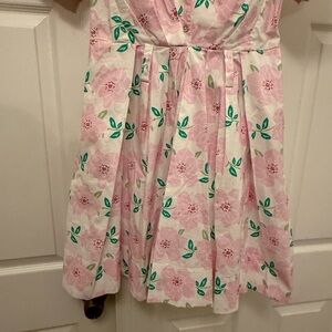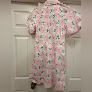 Draper James Pink Floral Midi Collared Puffed Sleeve Dress No belt Cotton Blend
