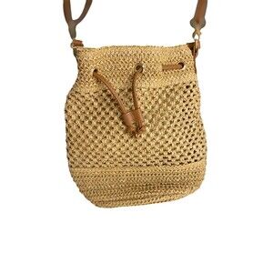 Boho Crochet Straw Bucket Bag Woven Raffia Drawstring Crossbody Shoulder Purse Y2K Beach.