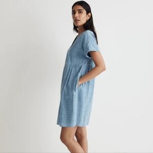 Madewell Button-Front V-Neck Mini Dress, Color Tranquil Lake Size M