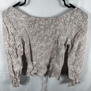 Japna Pink Leopard Print Ruched V-Neck Long Sleeve Smocked Crop Top