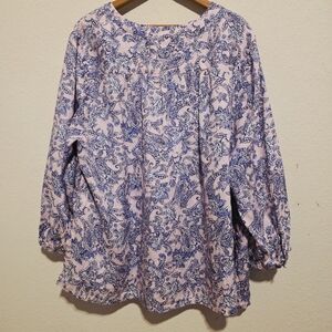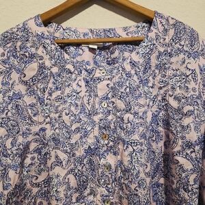 J Jill Love Linen Pink & Blue Tunic Top Paisley Floral Casual Beachy Women's 2X