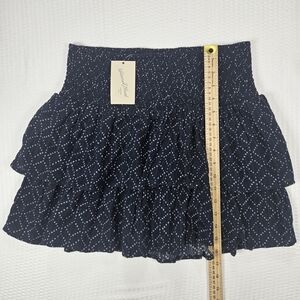 Universal Thread Smocked Waist Tiered Mini Skirt Navy Blue Boho Cotton Size M