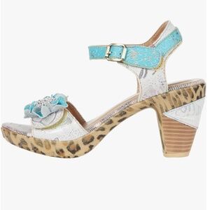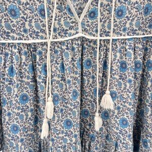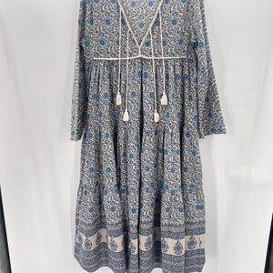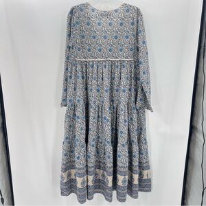 Charming blue floral dress with long sleeves by Christy Dawn.