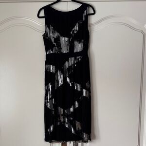 BCBGMaxAzria Black and Silver Midi Dress