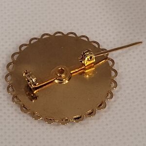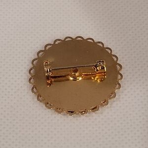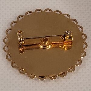 The brooch measures approximately 1.25" in diameter. Please see the photos for approximate measurements.
