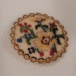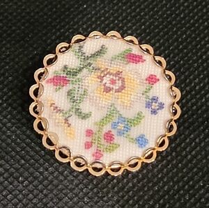 VINTAGE Handcrafted Dainty Petit Point Floral Brooch