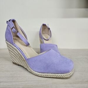 Kayleen - LA | Size 5.5 | Lilac Suede Ankle-Strap Espadrille Wedges