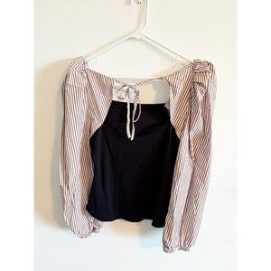 Anthropologie Black Neutral Striped Mixed Media Top