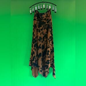 Condition: New With Tags (NWT) Bryn Walker Jersey Floral Wide Waistband A-Line Asymmetrical Hem Pull-On Skirt in Nutmeg Size XXS