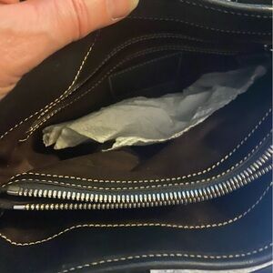 Coach Hang Tag, Genuine Leather, Double Leather Handles. Wear on handles (edge cote worn off), overall wear. This bag is vintage and not perfect - corner wear, strap wear. See photos or request additional.