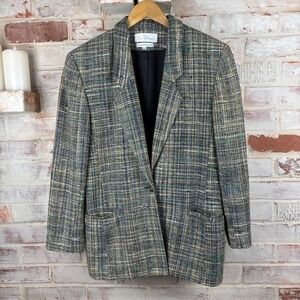Stay stylish with this wide lapel-feature dress jacket with a front tie from DS Labs. The wide lapel turns into a wide, wavy frill that flows around the entire body of the jacket. Very unique, very elegant. Looks fabulous over a dress, skirts, or dress pant/jumpsuit. Purchased at a boutique in London in 2004. Fits classic S/M. Signs of wear: light pilling under the arms, easily shaved off. 1029