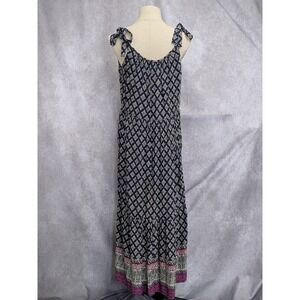 Beachlunchlounge Navy Blue Geometric Print Tie Shoulder Tiered Maxi Dress Medium