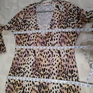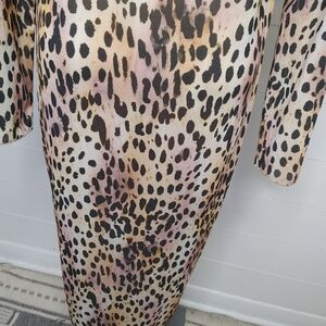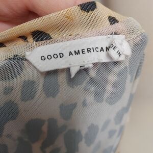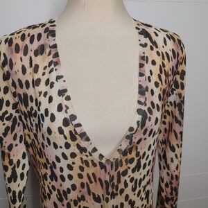 V neck cheetah print mesh midi long sleeve dress by Good American. Unlined. Sheer. Size tag removed from label but it's on the care tag. Size 5 converts to 2XL.