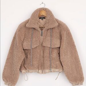 NWT- Taupe Faux Fur Drawstring Jacket