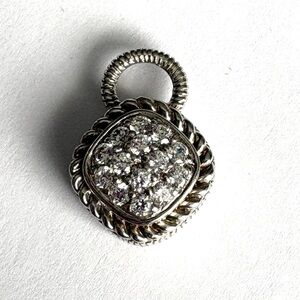 This elegant Judith Ripka 925 silver pendant/charm features sparkling cz’s, perfect for adding a touch of glamour to any outfit. The pendant measures 1 inch long and three-quarter inches wide. It does have some scratches on the back.