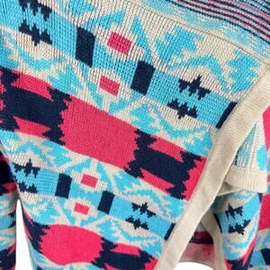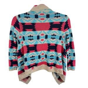 Kate Collection Colorful Aztec Print Open Asymmetrical Cardigan Sweater Size M