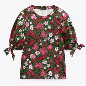 Zara tied sleeve top in floral print in size medium.