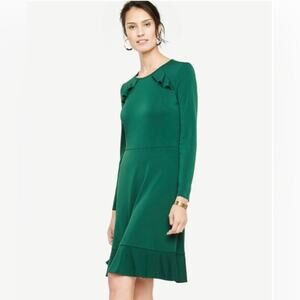 This is an Ann Taylor Long Sleeve Ruffle Detail Dress in Size 2 Petite (2P) and a beautiful Emerald Green color.