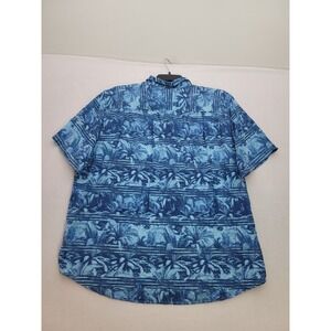Tommy Bahama Blue Floral Shirt Mens 2XL Button Rayon Hawaiian