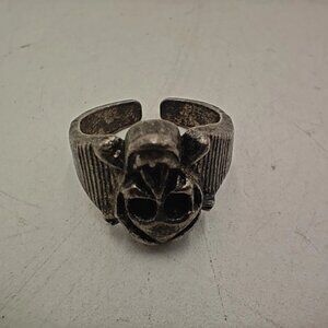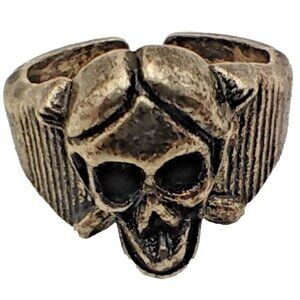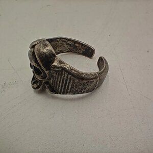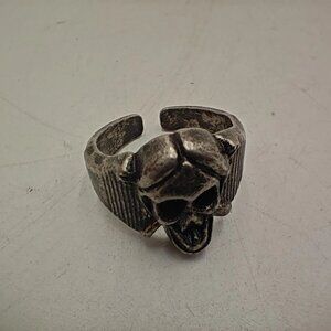 Silver Tone Skull Ring Gothic Biker Punk Style Chunky Unisex Size 12.5 + Open
