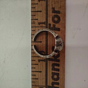This silver-tone skull ring features a bold, chunky design with a raised skull face and ribbed shoulders, giving it a classic biker / gothic / punk aesthetic. The natural wear and patina add character and depth, making it a great statement piece for everyday wear or collection.