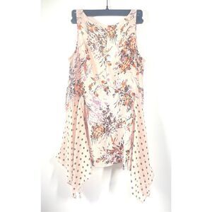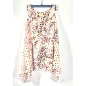 Anthropologie Vanessa Virginia Pink Floral Polka Dot V Neck Sheer Tank XS