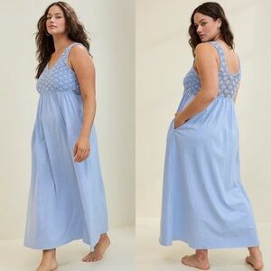 Aerie Crochet Maxi Dress Ocean Sky 100% Cotton Pockets, Summer, Pool, Spring Break, coastal, vacation, cruise, Grannycore