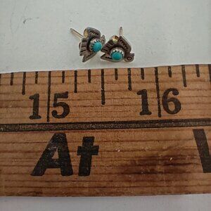 Vintage Fred Harvey Era Sterling Silver Turquoise Thunderbird Earrings 925